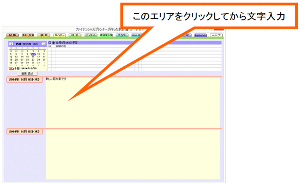 ※ 日記の縦表示、横表示の切り替え、表示日数、表示日付の設定は設定タブ内で行えます。